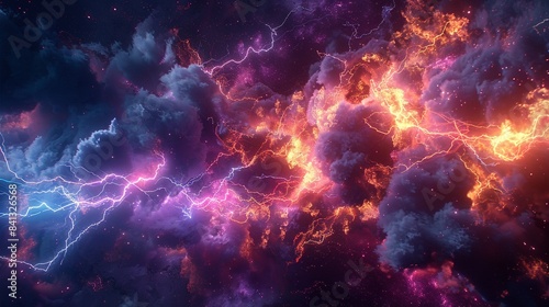 Various explosions with lightning, Cyberpunk, Neon hues, Digital art, Dynamic blasts and futuristic energy 8K , high-resolution, ultra HD,up32K HD