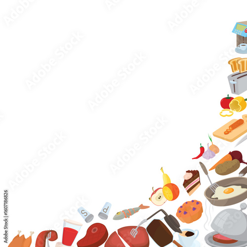 Various food icons forming a frame with copy space, ideal for restaurant menus or recipe designs