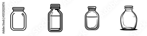 Various glass jars and containers in different shapes and sizes on a plain background during a creative design process