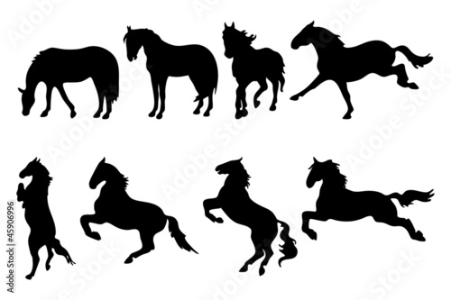 Various horse silhouettes on white