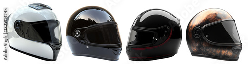 Various Motorcycle Helmets in Different Colors and Designs, Isolated on Transparent Background