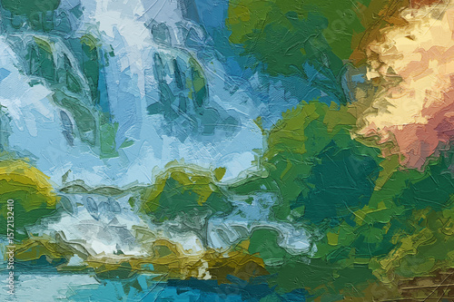 Various oil paintings, floral landscapes, forests, waterfalls, lakes, chrysanthemums, spotted deer