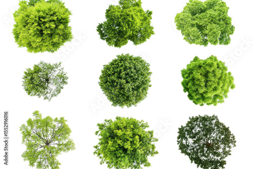 Various overhead tree types isolated on transparent background showcasing diverse foliage and colors in nature
