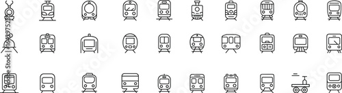 Various Train and Locomotive Icons. Train icons in black and blue set. Vector Illustration