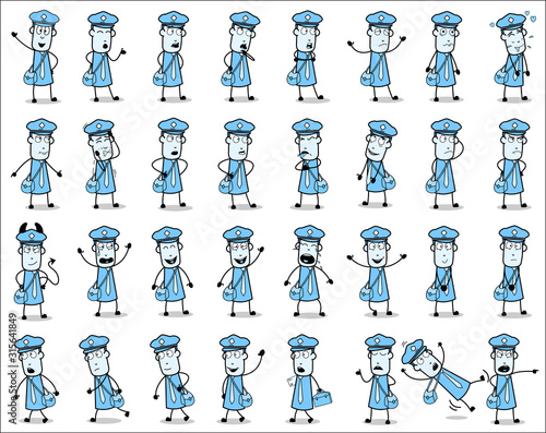 Various Vintage Postman Poses - Set of Concepts Vector illustrations