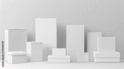 Various white geometric shapes on a gray background.