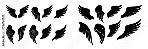 Various wing designs in black silhouette showcasing different styles and shapes for creative use in art and design projects