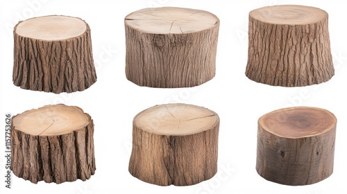Various Wooden Stumps Displaying Unique Textures and Shapes for Nature Themes