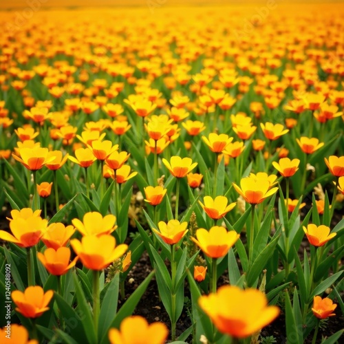 vast expanse of bright orange flowers swaying gently, yellow, oranges, field