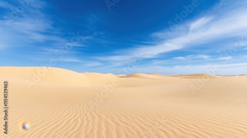 Vast Golden Sand Dunes Under Bright Blue Sky With Wispy Clouds