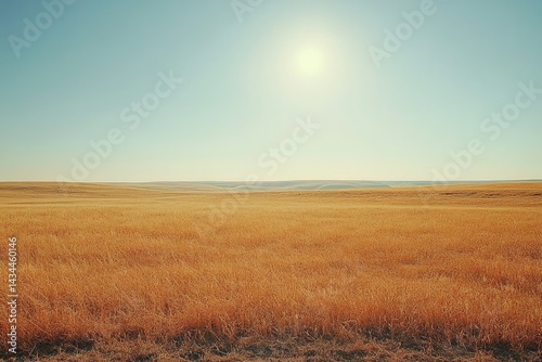 Vast golden wheat field under a bright sun, showcasing a tranquil and serene landscape.