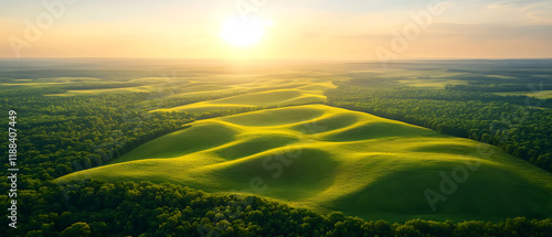 Vast Green Fields with Forest on the Horizon, Aerial Perspective