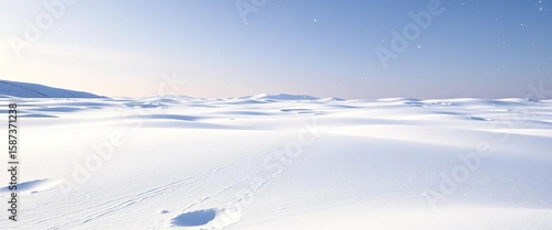 Vast, pristine snowdrifts under a winter snowfall, empty landscape, background, winter wonderland
