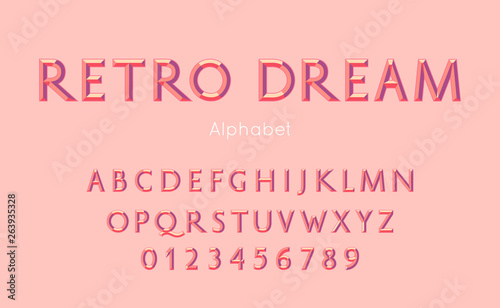 Vector 3d retro dream alphabet and font. Letters and numbers