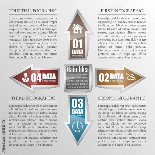 vector 4 arrow banners business infographic process diagram compare service banner presentatoin. Four steps to achieve this goal. Four glossy strip for your annotations. Four full-color sticker
