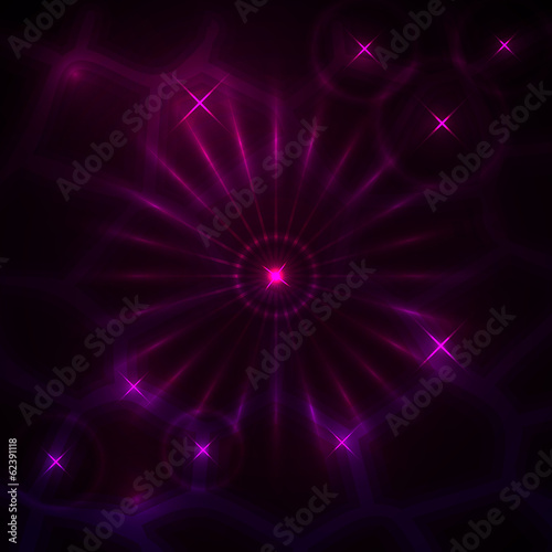 Vector abstract dark background with glowing rays and stars