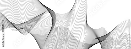 Vector abstract wavy and curve line art flowing dynamic grey isolated on transparent background in concept luxury, wave, wind, ocean, technology, science, music, sound, banner, poster