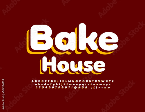 Vector advertising logo Bake House. Bright layered Font. Artistic Alphabet Letters and Numbers