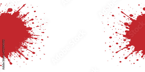 Vector art illustration of a red ink splat background with paint splashes and grunge texture, perfect for a bold, artistic design