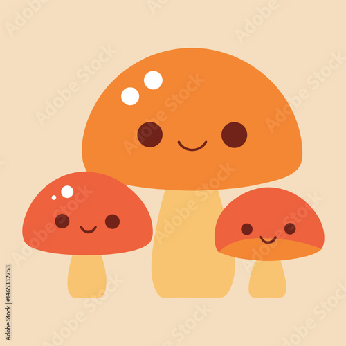 Vector art illustration of a yellow and red mushroom cartoon character, a healthy fungus design