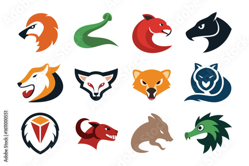 Vector art of a collection of animal head logos showcases a variety of fierce and playful designs