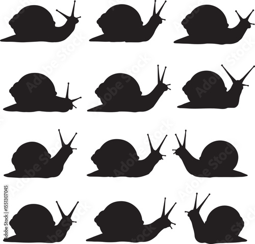 Vector art of a collection of snail silhouettes isolated on white background