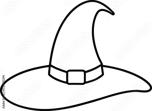 Vector art of a simple black and white line drawing of a classic witchs hat, isolated on a, perfect for halloween or fantasy themes