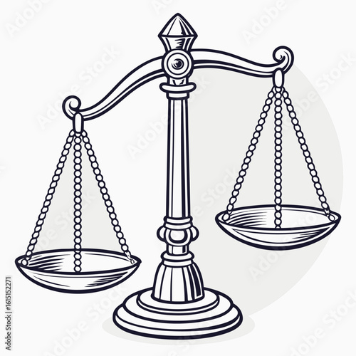 Vector art of a vintage illustration of the scales of justice representing legal balance