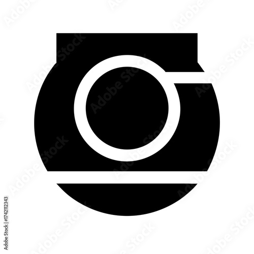Vector art of abstract black and white icon featuring a stylized pot or container with a circular element, , representing design and creativity