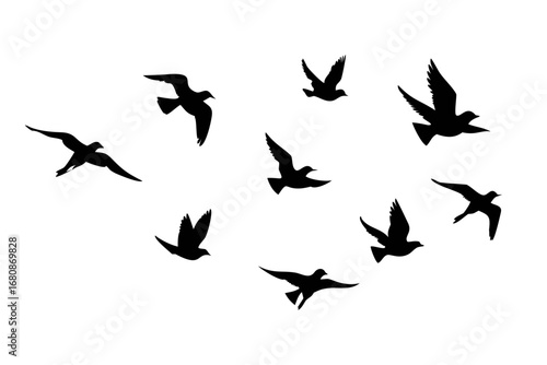 Vector art of collection of bird silhouettes, capturing the essence of flight and freedom in a simple and elegant design
