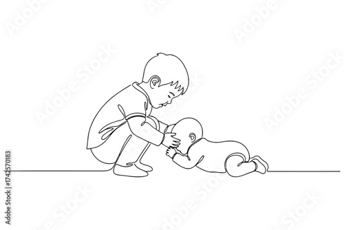 Vector art of continuous line drawing of a brother and sister playing together