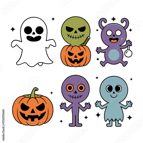 Vector art of halloween ghost pumpkin and monster isolated on white background