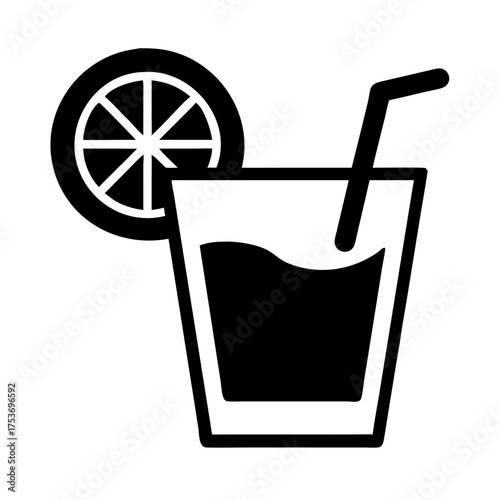 Vector art of refreshing drink with lemon slice and straw, perfect for summer vibes