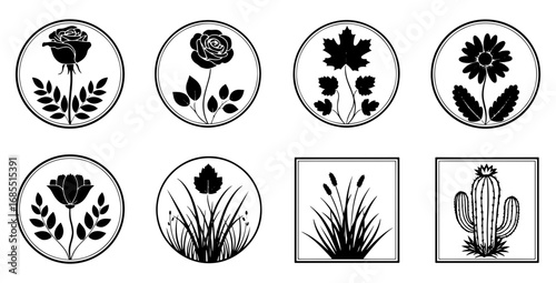 Vector art of set of plant silhouettes, botanical vector collection for logo design, tattoo or decoration