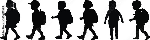 Vector art of silhouette of children with backpacks isolated on white background