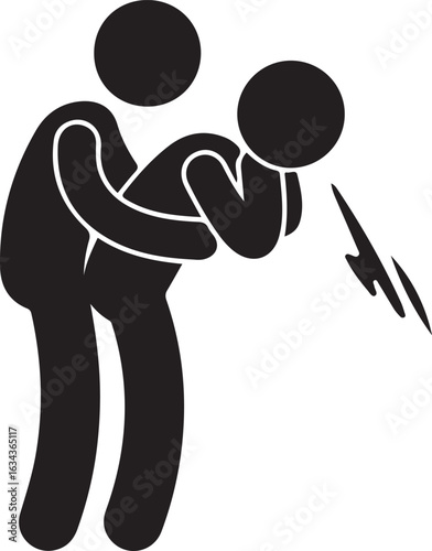 Vector art of stick figure helping a sick person vomiting isolated on white background