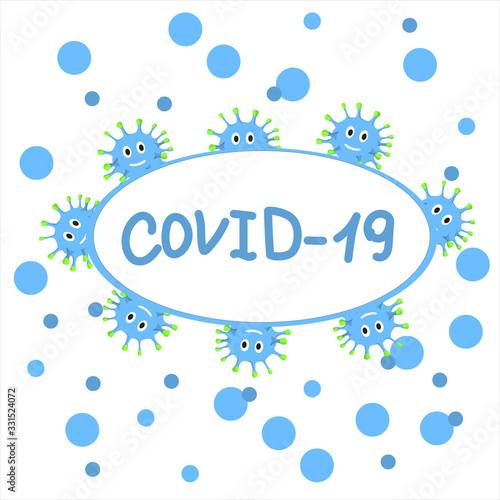 Vector background drawing, pattern with the image of a coronavirus in cartoon flat style on a white isolated background. Seamless vector pattern, background.