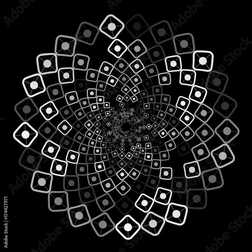 Vector background optical illusion. A square and a point. Spiral rotation. Isolated design element. White, black.