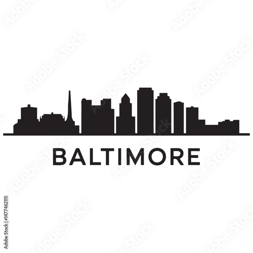 Vector Baltimore skyline. Travel Baltimore famous landmarks. Business and tourism concept for presentation, banner, website. Vector black silhouette. with white background