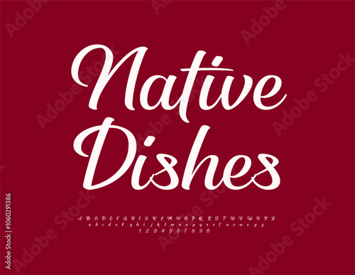 Vector beautiful label Native Dishes. Stylish Calligraphic Font. Trendy Alphabet Letters and Numbers set.