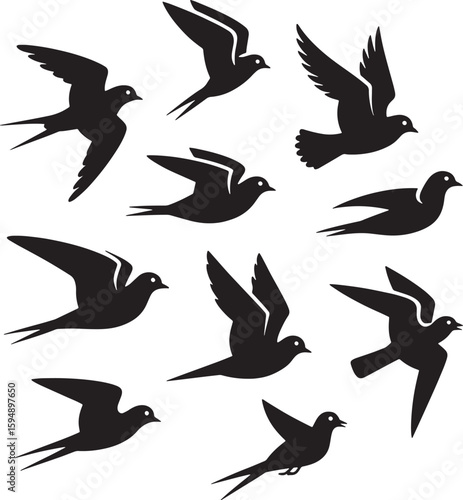 Vector Bird Collection – Clean Line Art of Birds in Various Poses