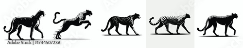 vector black and white silhouette of a cheetah