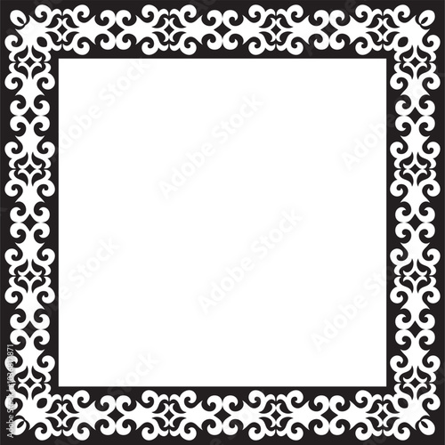 Vector black monochrome square Kazakh national ornament. Ethnic pattern of the peoples of the Great Steppe