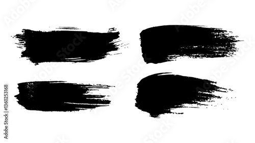 Vector black paint brush strokes set on solid white background. Creative black paint strokes on white background for artistic design and illustration projects
