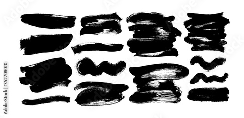 Vector black paint, ink brush strokes and lines. Dirty grunge design element, box or background for text.
