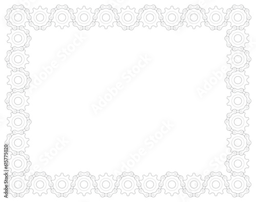 Vector black rectangle cog wheel with intertwined chain. Bicycle border. Isolated on white background