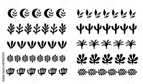 Vector Boho Floral Shapes Doodle Plant Borders Set