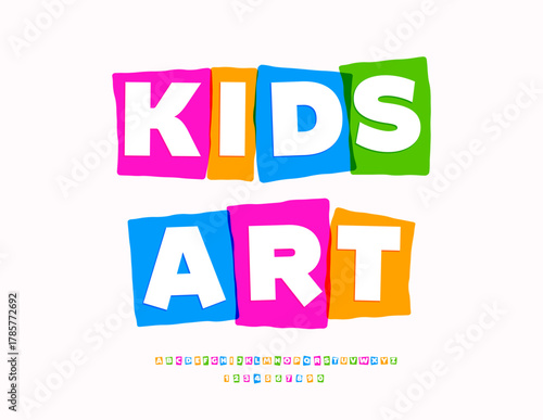 Vector Bright emblem Kids Art with Watercolor Alphabet Letters and Numbers set. Creative Childish Font