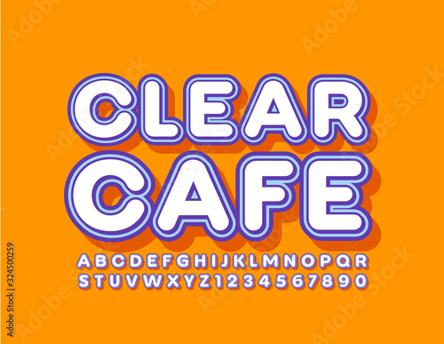 Vector bright logo Clear Cafe. Stylish creative Font. Modern Alphabet Letters and Numbers.