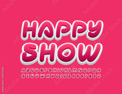 Vector bright logo Happy Show. Handwritten Pink Font. Creative Alphabet Letters and Numbers